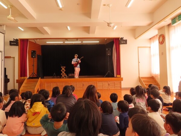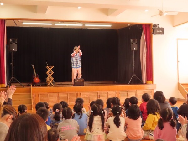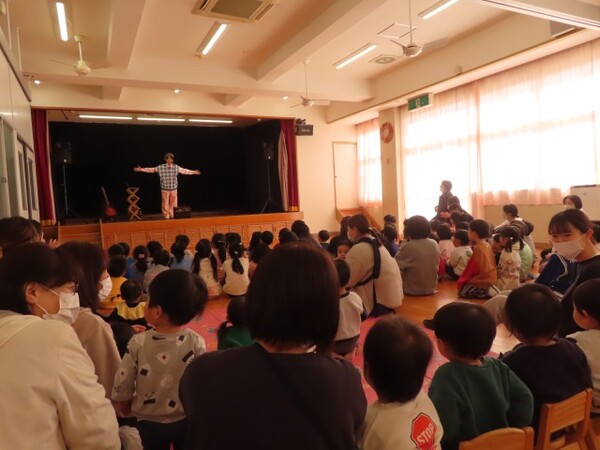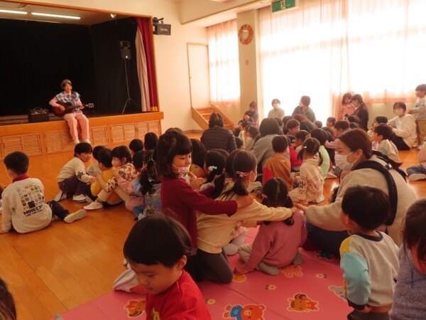 たいちろー☆おにいさんに園に来ていただきコンサートをしました。歌や手遊び歌で大いに盛り上がりました。