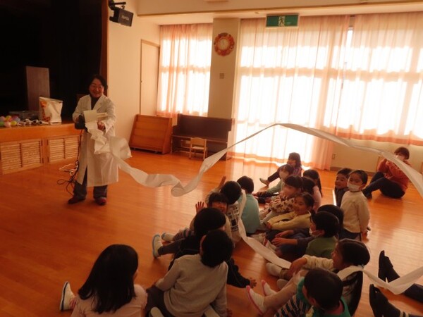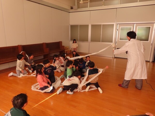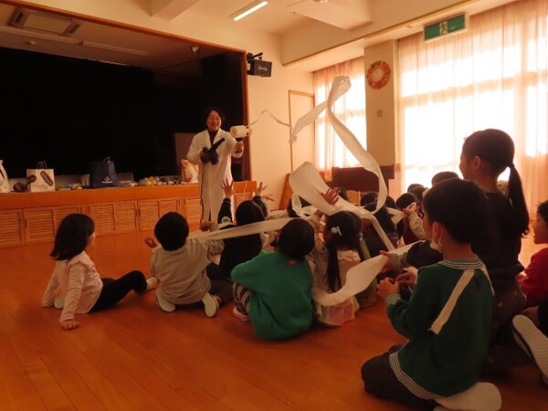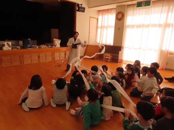 でんじろう先生のかがくあそびの年中ぐみの様子です。