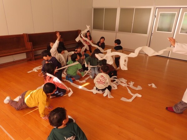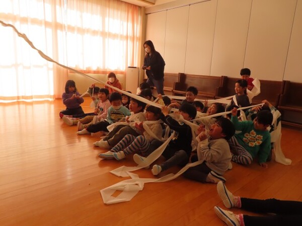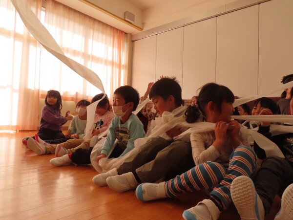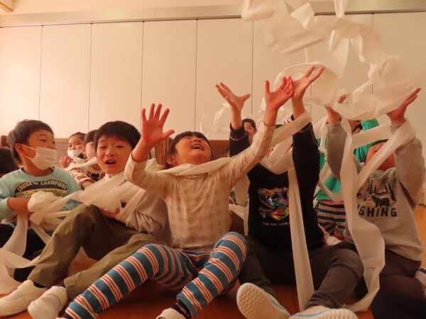 トイレットペーパーが風にのり次々と飛んでくると「わー」「きゃー」と一番の盛り上がりをみせていました。