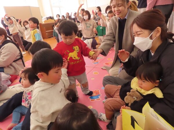 歌や手遊びを一緒にして、みんなで盛り上がりました。