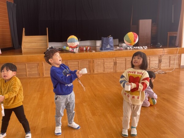 2日間、楽しんだでんじろう先生のかがくあそびの時間! 今回は「かぜのちから」を感じながら、かぜの不思議をからだで感じる時間をもてたようです。