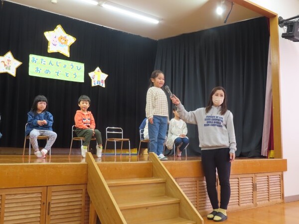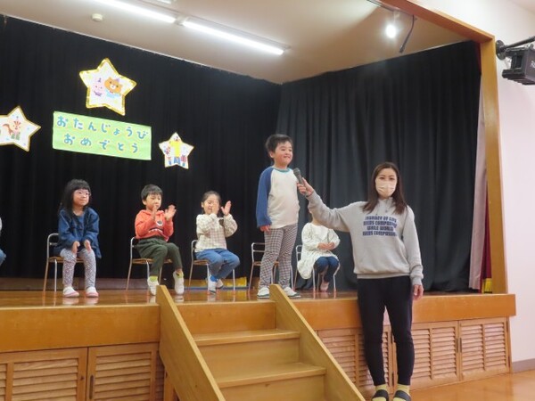 得意なこと、好きなことの発表では、お友だちからたくさんの拍手のプレゼントをもらい嬉しそうにしていました。