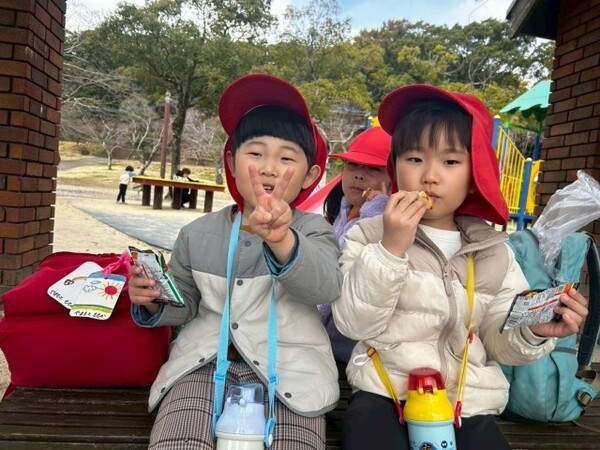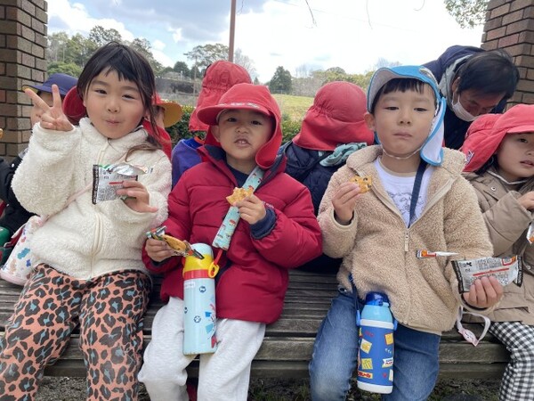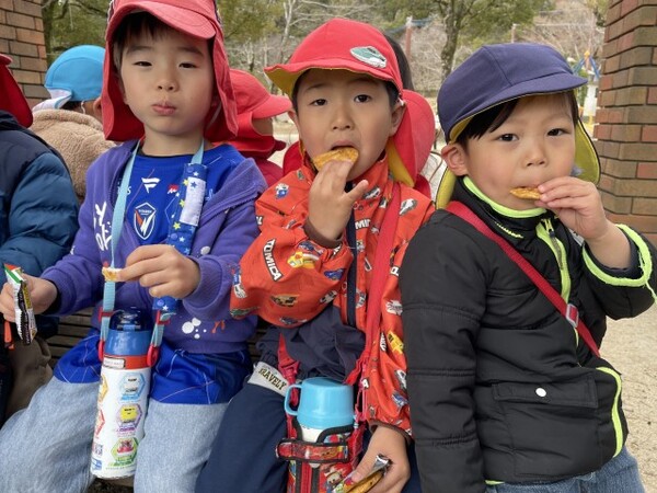 途中でおやつタイムで嬉しそうにおやつ(せんべい)を食べる子どもたちでした。