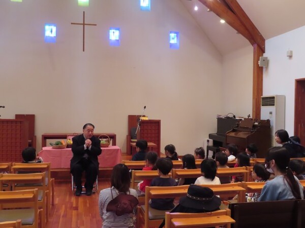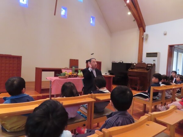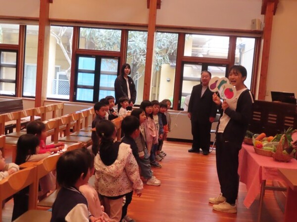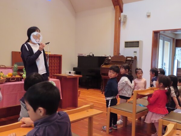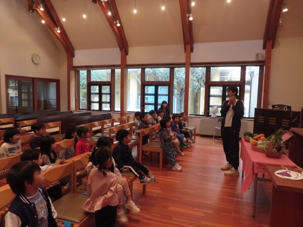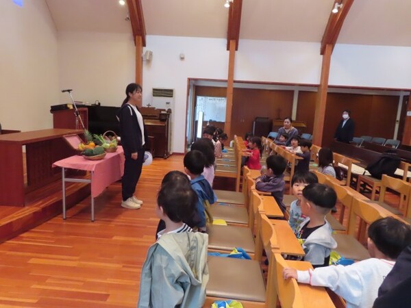 年少・あおぐみの収穫感謝礼拝の様子です。
