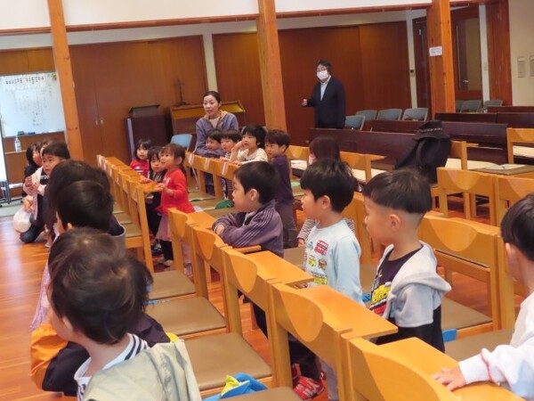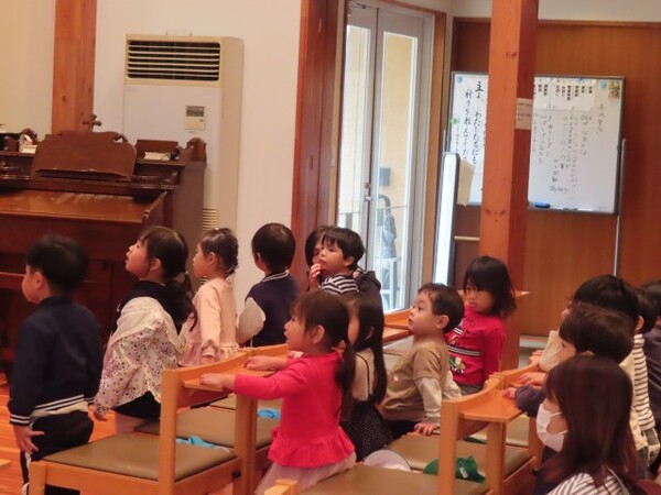 あおぐみにとっては教会での初めての礼拝でしたが、静かな雰囲気の中、神さまのお話しを聞いたり、讃美歌を歌ったりと礼拝の時をもつことができました。