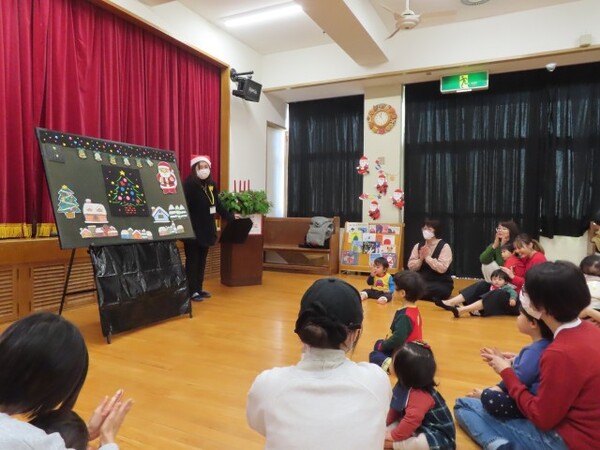 おあそび会で、クリスマス祝会をしました。たくさんの方が参加してくださり、賑やかな会となりました。