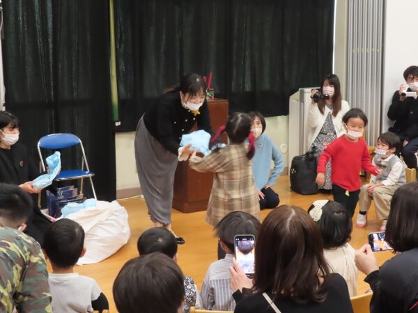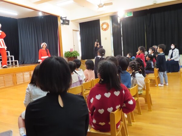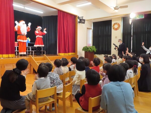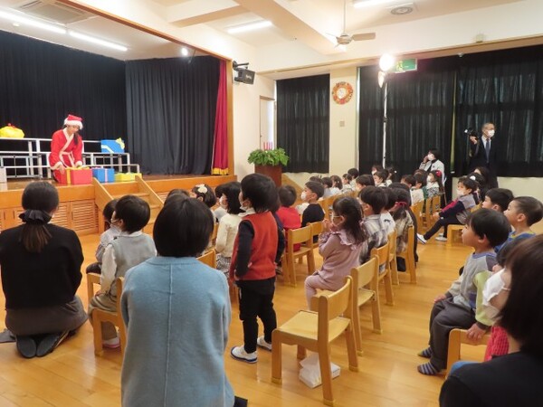 劇の最後にはサンタクロースが登場! 子どもたちはびっくりしたり、喜んだりしていました。