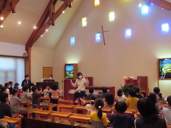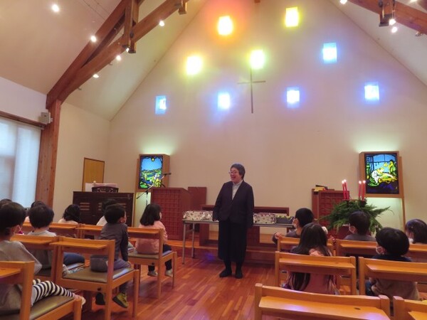 年長ぐみ、年中ぐみのクリスマス礼拝の様子です。子どもたちの心のこもった献金を神さまにお捧げしました。どうか御用のためにお使いください。