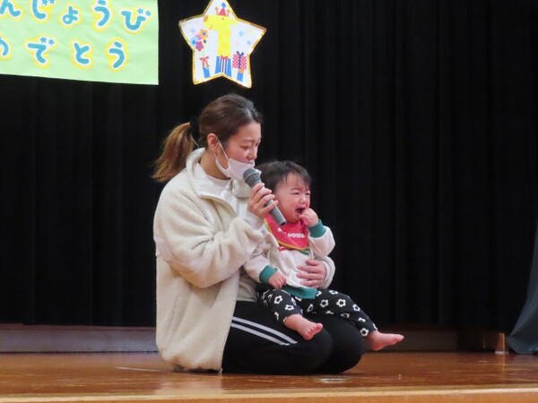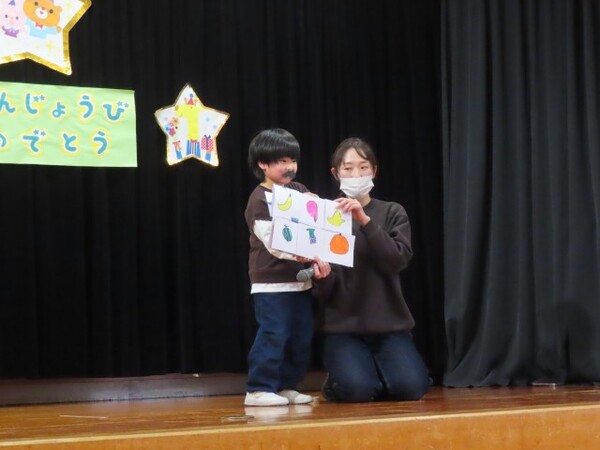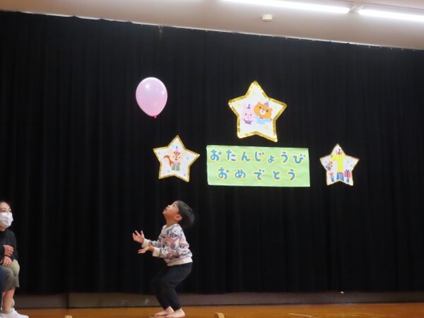 誕生児は一人ひとり、みんなの前で好きなこと・得意なことの発表を頑張りました。みんなからたくさんの拍手のプレゼントがあり、嬉しそうにしていました。