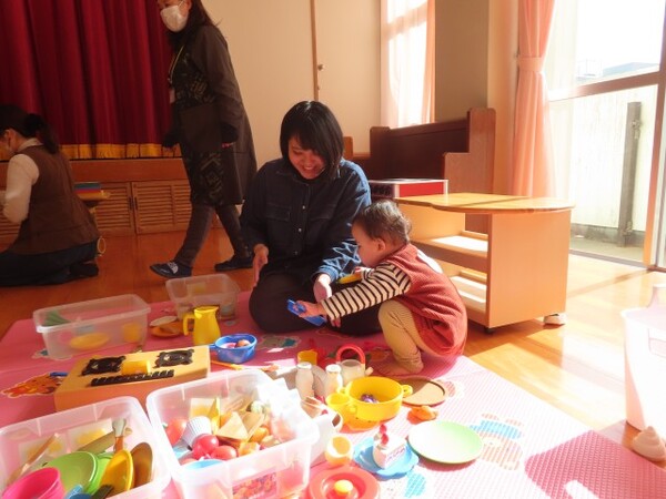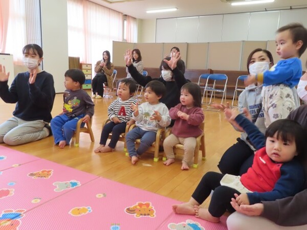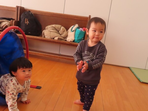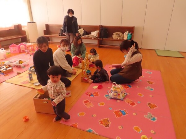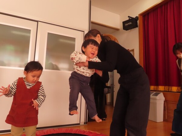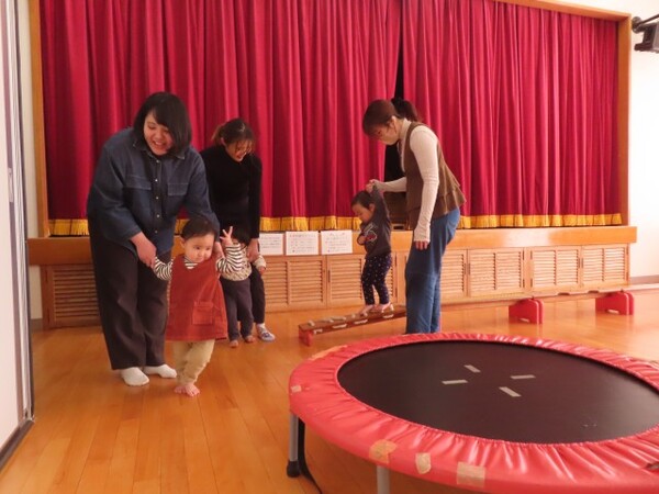 好きな遊びを楽しんだ後は、アスレチック遊びをしました。トランポリン、平均台、マット、トンネルを子どもたちのペースでめぐりました。トンネルから出てくるときの可愛い表情に場がなごんだり、トランポリンを元気いっぱい跳ぶ姿を微笑ましく思ったりしました。最後まで順番を守りながら親子で楽しい時間を過ごしていました。次回は2月16日(月)です。みなさんのお越しをお待ちしております。