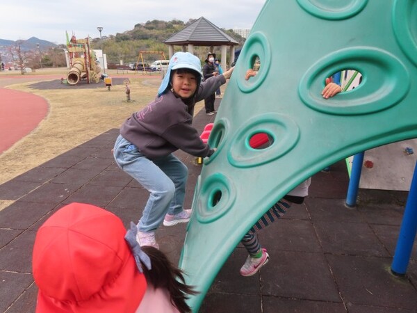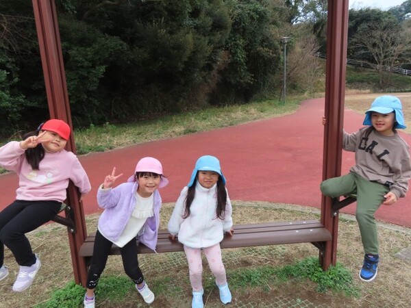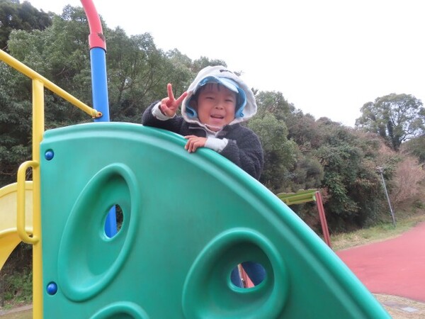 年長ぐみで出雲近隣公園まで遊びに行きました。近隣公園では、遊具で遊んだり、長崎市の景色を眺めたり、おやつを食べたりして楽しみました。