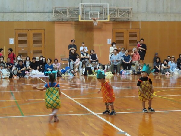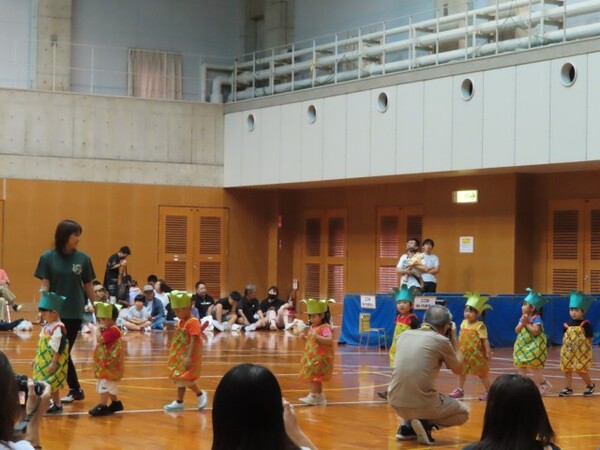 あお組表現『パイナポー体操』、年中組表現『パラバルーン』の様子です。