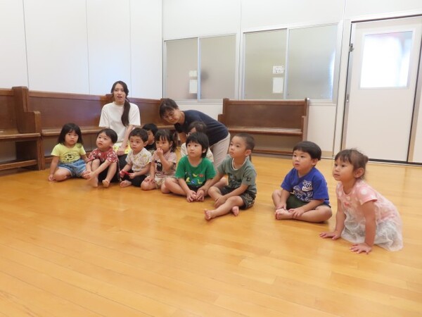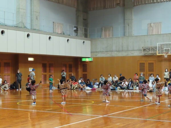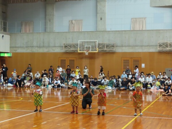 年少ぐみはダンスです。明るいリズミカルな音楽にノリノリの子どもたちでした。